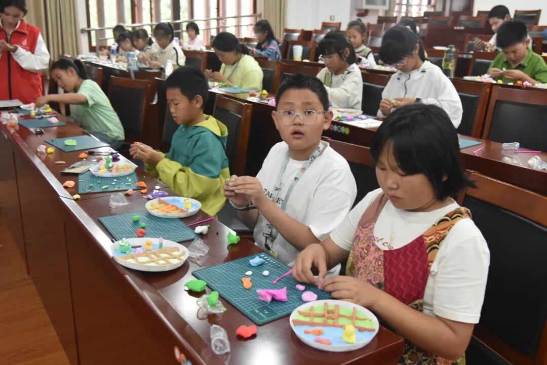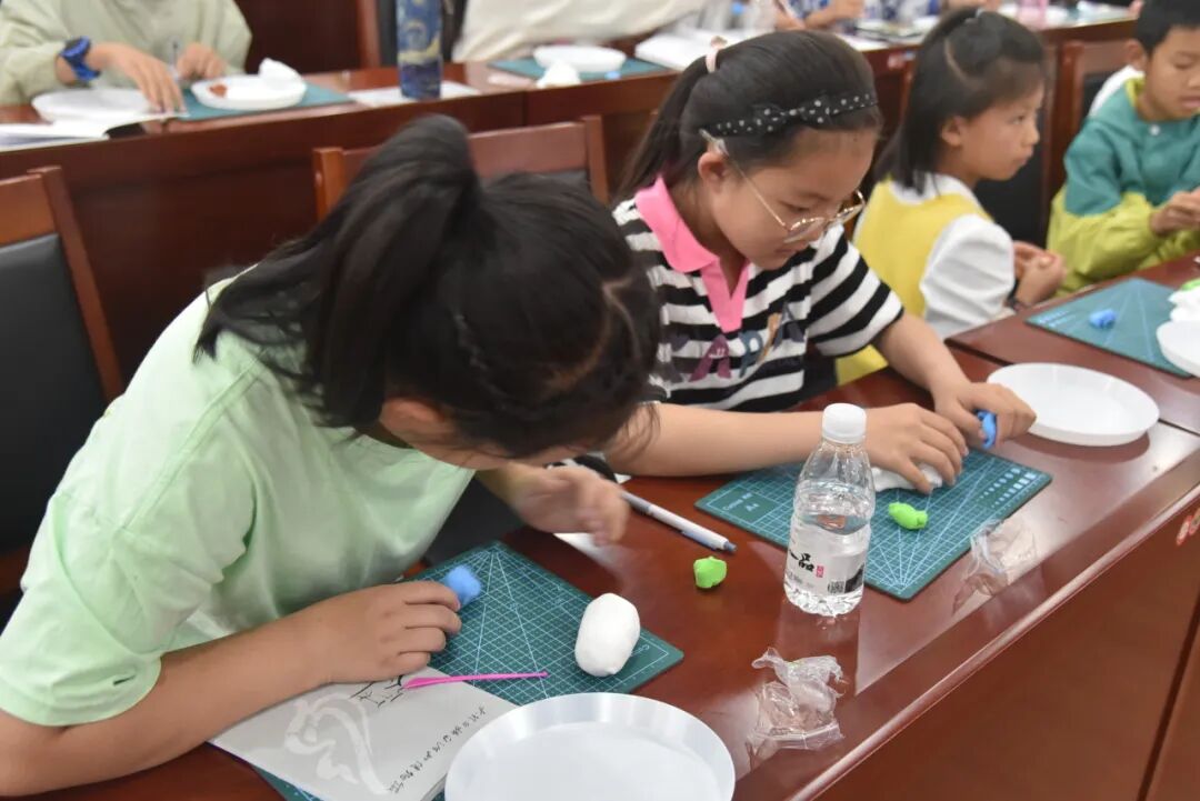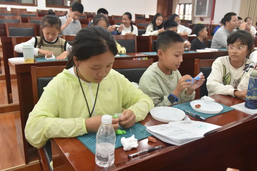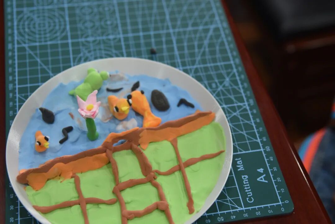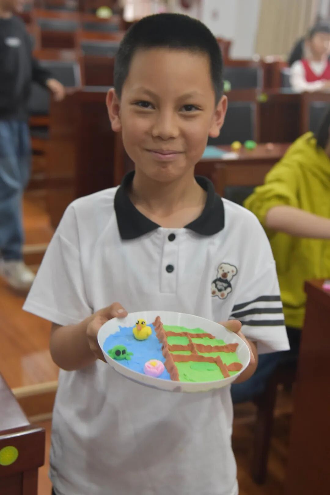 觀看完央視的視頻《文脈春秋·大理篇》,帶著剛學(xué)習(xí)的知識,孩子們化身“小小考古研究員”,一頭扎進(jìn)展廳,仔細(xì)端詳著出現(xiàn)在視頻里的“明星文物”,看那些講述古老農(nóng)耕故事的陶器文物??磯蛄耍磕蔷蛣邮之嬒聛?!畫完了?“手工達(dá)人”的超輕黏土登場!揉一揉,捏一捏,搓一搓,孩子們的小手仿佛有魔力,把陶水田模型上的水田、溝渠、水生動植物統(tǒng)統(tǒng)“復(fù)制”出來,大家制作的鴨子、荷花、青蛙、小魚形態(tài)各異卻充滿童趣。指尖上的大理農(nóng)耕史,就這樣在歡聲笑語中被“捏”進(jìn)了記憶里!