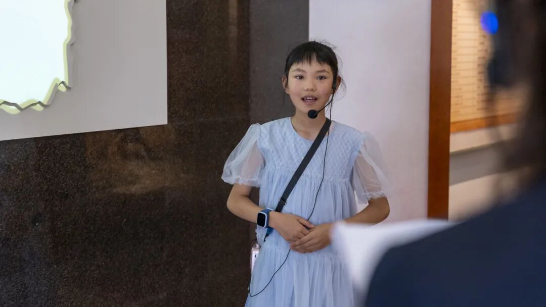 時光飛逝,轉(zhuǎn)眼到了修煉成果檢驗(yàn)的時刻。經(jīng)過幾天密集的知識充電、技能打磨和實(shí)戰(zhàn)演練,孩子們早已摩拳擦掌。他們分組走進(jìn)展廳,站在自己熟悉的展板前,深呼吸,開口——童聲童氣卻字正腔圓的講解流淌出來,小手堅(jiān)定地指向展板細(xì)節(jié),眼神自信地與觀眾交流。那份專注和認(rèn)真,儼然就是真正的“歷史代言人”!許多孩子表現(xiàn)超乎預(yù)期,講得清晰流暢,儀態(tài)大方得體,贏得了現(xiàn)場老師和大學(xué)生志愿者的一致點(diǎn)贊:“太棒了!聲音再大一點(diǎn)就更棒啦!”