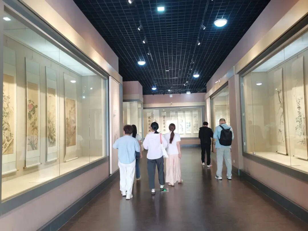 走進(jìn)展廳,一幅幅精美的書畫作品錯(cuò)落有致地懸掛在墻上,令人眼前一亮。書法作品中,或筆力雄健、氣勢磅礴,或行云流水、飄逸灑脫;繪畫作品里,山水意境悠遠(yuǎn),人物栩栩如生,花鳥靈動(dòng)鮮活。作品不僅展現(xiàn)了書畫家們精湛的技藝,更飽含著對生活的熱愛和對藝術(shù)的執(zhí)著追求。不少游客與書畫愛好者或凝神駐足,眉眼間滿是專注,細(xì)細(xì)品味作品中筆墨流轉(zhuǎn)的韻味;或與身旁同行者輕聲交流,眼神中閃爍著對藝術(shù)共鳴的欣喜;或頻頻舉起手機(jī),將眼前的書畫精品定格成永恒畫面,沉浸在濃厚的藝術(shù)氛圍之中。