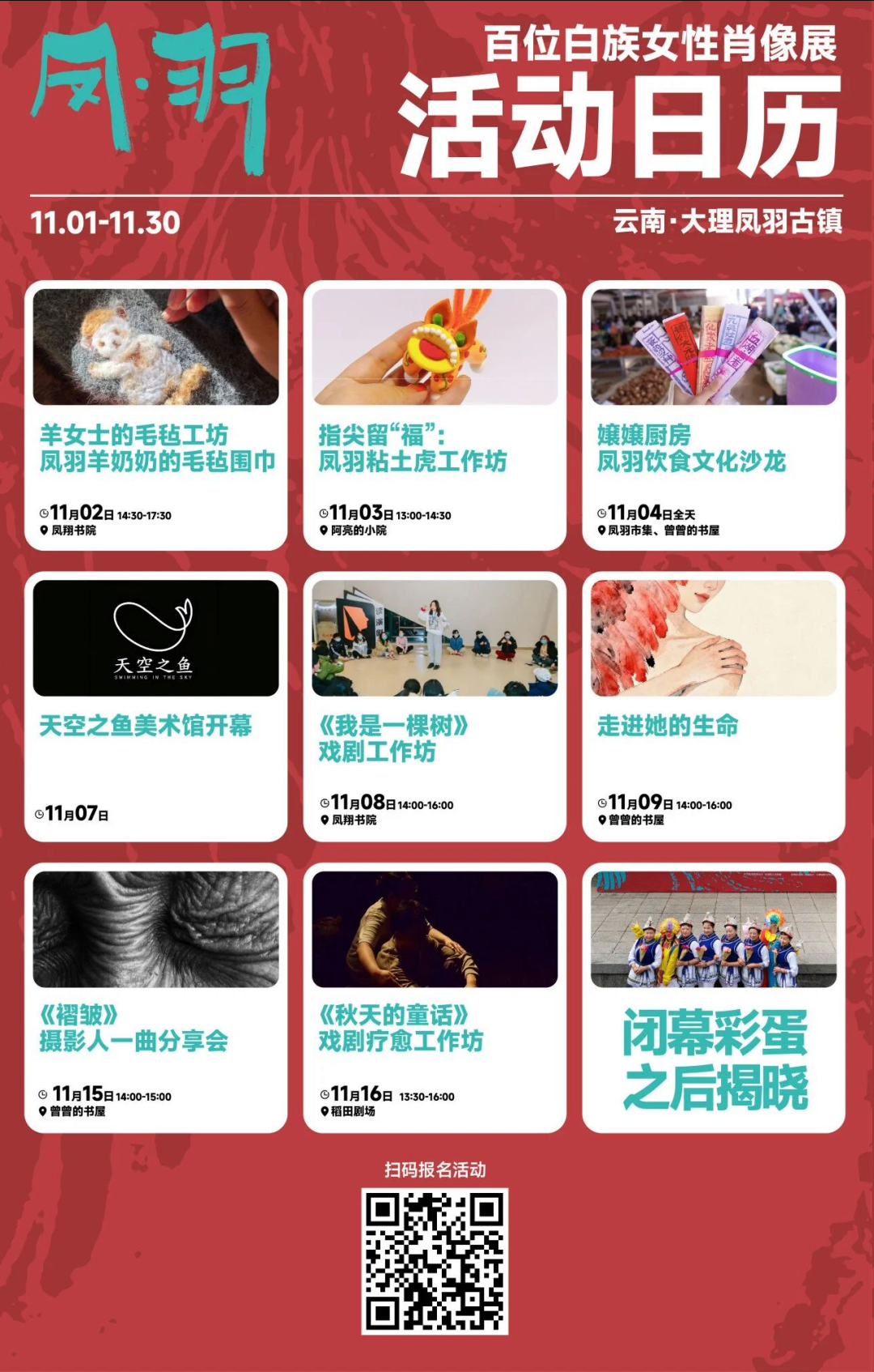 今年11月1日-30日,《鳳·羽百位白族女性肖像展》將在鳳羽展出,