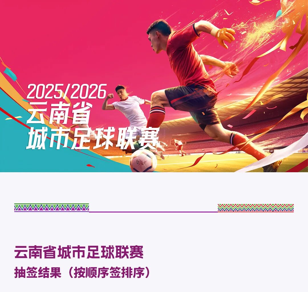 11月6日晚,2025/2026云南省城市足球聯賽抽簽結果出爐。根據賽制,第一階段主客場單循環(huán)賽制,其中麗江、昭通、大理、臨滄、玉溪、迪慶、德宏、保山將有8主7客的比賽;西雙版納、文山、曲靖、昆明、楚雄、普洱、紅河、怒江將有7主8客的比賽。具體抽簽結果如下: